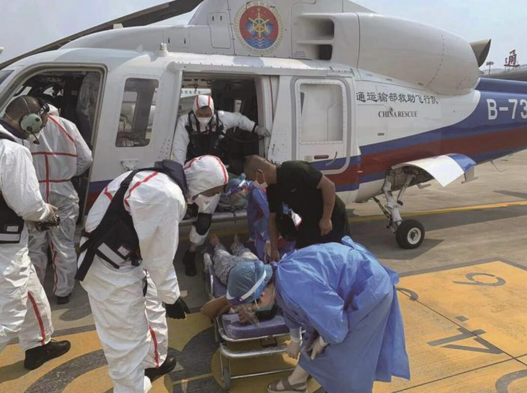 13时50分,交通运输部东海救助局东海救援飞行队机组与机场塔台取得联系,计划14时20分左右落地南通机场。机场塔台有序调配组织进港航班避让、指挥救援直升机优先着陆,开辟出一条安全便捷的急救通道。