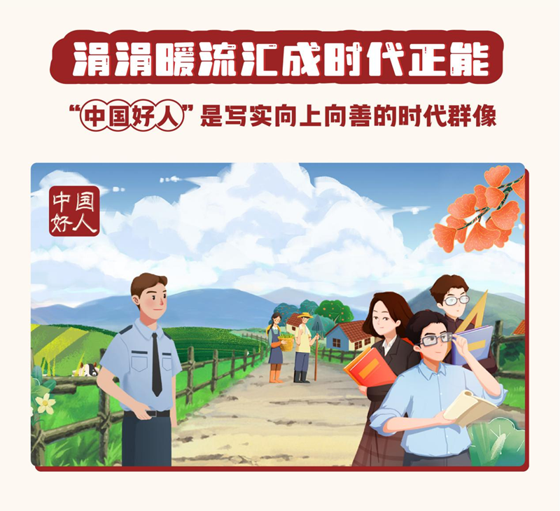 故事是最写实的歌颂:“中国好人”出线,中国精气神在线。涓涓暖流汇成时代正能,“中国好人”是写实向上向善的时代群像。听得见的强音:“中国好人”最可贵的地方是在平凡工作中创造不平凡的业绩;看得见的真实,有日复一日呵护千年迎客松的环卫保洁与“守松人”,有让更多孩子走出大山的夫妻伉俪,有疫情不退我决不退的人大代表;品得出的传承,从“我推荐我评议身边好人”到好人事迹线上展播线下相传,遇见无数感动,并非惊天动地,重在勤勤恳恳;也非丰功伟绩,贵在尽职尽责,生活小写意,让好人“朋友圈”越来越大,让好人“故事汇”越讲越生动。