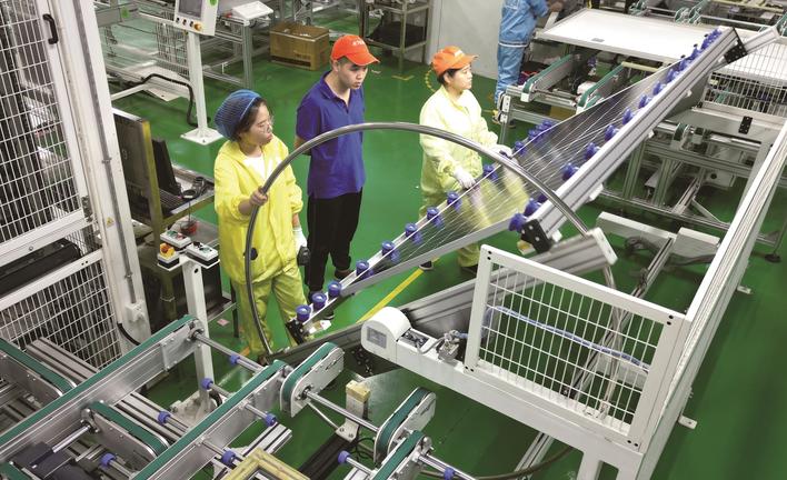 昨天,海安高新区的浚丰太阳能(江苏)有限公司智能车间内,全自动智能制造生产线高效运转。该生产线每天产出太阳能电池光伏组件6500件,与同等产能的传统生产线相比,用工减少约20%,能源消耗降低约30%,生产效率提升约160%。近年来,海安以科技创新为引擎,支持光伏企业加大科研创新投入,实施自动化、信息化、智能化等升级改造,延伸产业链、提升价值链、打造供应链,持续提高光伏产业竞争力。 顾华夏摄