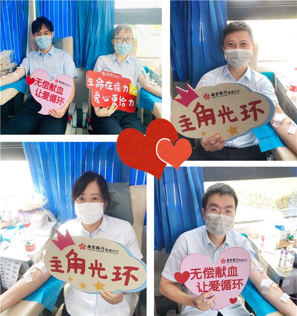 “无偿献血是挽救生命的爱心善举,也是一项回馈社会的有力行动。”南京银行南通分行分工会相关负责人表示,该行将不断深化公益品牌建设,持续开展无偿献血、爱心助学、志愿服务等公益活动,以实际行动践行“责任金融,和谐共赢”的企业文化理念,为造福社会、传播正能量扛起金融企业的责任担当。 南文宣