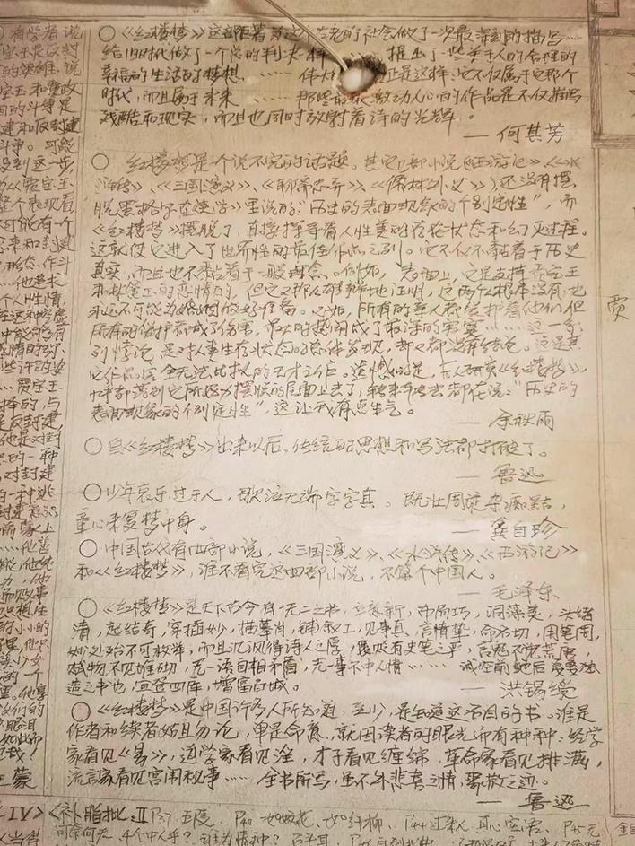 “少年哀乐过于人,歌泣无端字字真,既壮周旋杂痴黠,童心来复梦中身。”这是清代诗人龚自珍《己亥杂诗》中的一首。如今,这首二十八字的小诗和关于《红楼梦》的万余字阅读笔记,被冷伯建誊抄在自家的白墙上,甚为壮观——