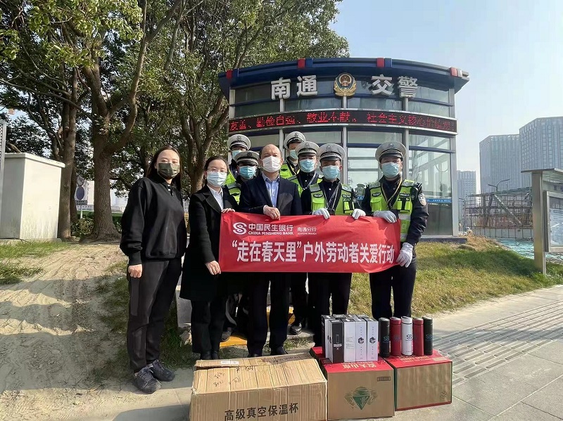 民生银行南通分行疫情期间慰问一线交警,给户外工作者送温暖