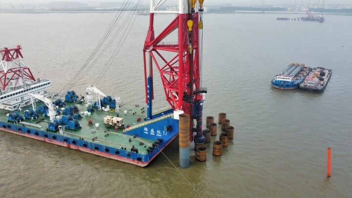 8月28日至9月3日,伴随着打桩船安全作业,张靖皋长江大桥主桥水上施工取得新进展,南航道桥南主塔共打桩12根。这是南通过江通道建设“八龙过江”中的第四条“龙”,连接苏州、南通、泰州,形成区域新过江公路运输的便捷通道。