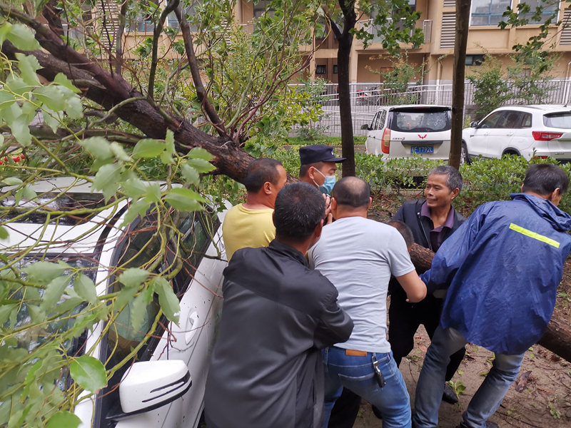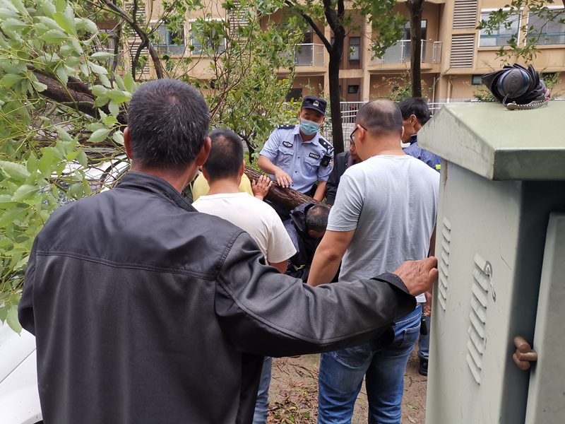 9月14日以来,汇龙镇中心派出所对于接报的受灾警情,第一时间出动,第一时间处理,第一时间救助。共出动警力60多人次,处置各类受灾警情22起,救助群众20余人。9月15日上午,汇龙镇中心派出所接到报警称,辖区城东花园树木在台风肆虐之下被刮断,被刮断的枝干堵住了小区的主干道,影响车辆进出。接到居民的报警求助后,民警带领辅警立即赶往现场,和居民一起齐心协力,冒着风雨将这些刮断的树木和枝干清理至空旷区域并固定好,防止大风将其吹散造成次生伤害。(杨舜茜)