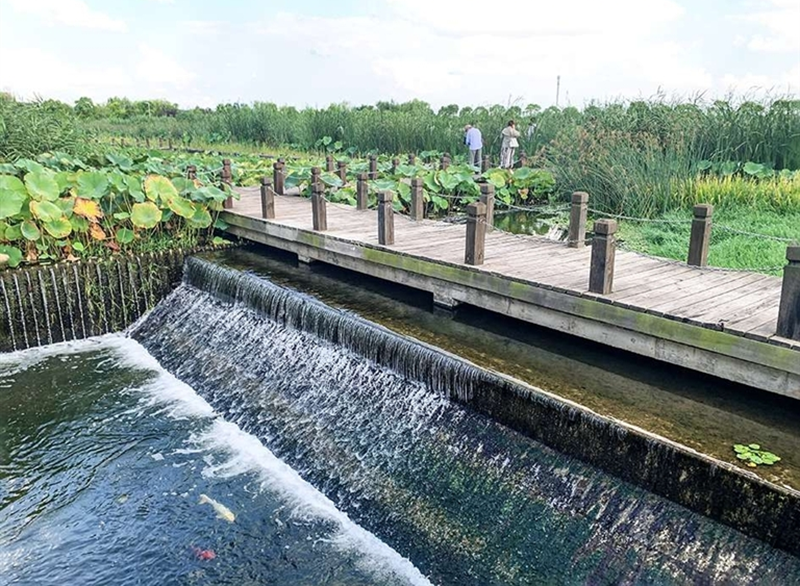 亭亭玉立的睡莲、随风摇曳的芦苇,木质栈桥蜿蜒其间、排水口处清冽的水“哗哗”流淌……颇有小桥流水的韵味,可这并不是园林美景,而是江苏省南通市通州区益民污水处理厂的人工生态湿地。该湿地已入选江苏省十大生态安全缓冲区典型案例。