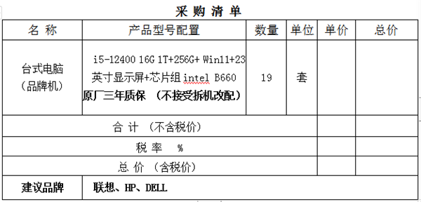 本社因工作需求,根据相关要求,对工作用台式电脑进行公开询价,邀请符合相关条件、资质的供应商进行询价响应。