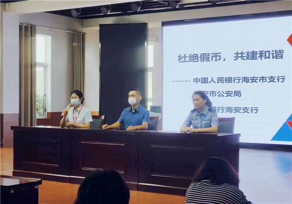 当日,人民银行海安市支行、海安市公安局、南京银行海安支行,联合开展“杜绝假币,共建和谐”主题宣传活动,普及金融知识,强化防范意识,致力共建和谐健康的金融消费环境。