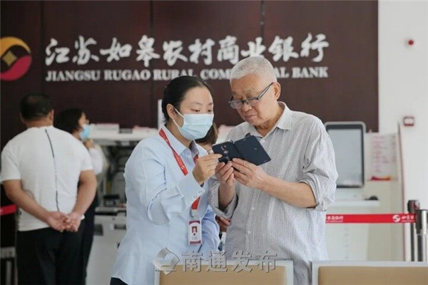 验收组第一站来到如皋市农村商业银行城东支行,大厅里设置了带扶手的老年人爱心座椅,配置了数十只不同度数的老花镜、放大镜、助行起身器、四脚拐杖、轮椅、电子血压计、电子血糖仪、广播收音机、SOS报警铃等服务设施,满足行动不便的老年客户办理需求。大厅爱心助老服务员统一佩戴红色爱心帽,提供一对一助老服务。同时该行设置了“尊老公益区”,供老年客户休闲看书、测量血压血糖等,提供尊老敬老宣传,志愿者为老年客户设计了安心联系卡,用于登记老年人基础信息和联系人,方便与老年客户保持联络。作为“江苏省银行业文明规范服务适老网点”、2021年“南通市银行业金融机构适老化服务示范网点”,近年来,该行致力于网点适老化改造,从软硬件等方面对服务环境进行了升级,通过优化厅堂布局、优化人员配置、提升服务质效,不断提升老年人金融服务获得感。同时该行积极拓展支付服务适老化应用,手机银行、STM自助柜员机等自助设备配备超大字体和老龄客户专版,满足老年客户运用金融智能技术的需求。