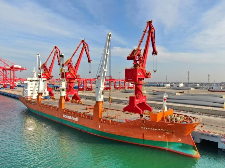 大港崛起,渐露峥嵘。数据显示:该码头自开港后,便打造项目“热启动”,从2021年12月底第1艘外轮到港至今第58艘停泊,跑出新出海口建设“加速度”。 截至目前,吕四“2+2”码头通用泊位共完成货物吞吐量98.84万立方米,其中出口风电叶片557片,实现了风电叶片、模块、设备等货量的平稳增长。