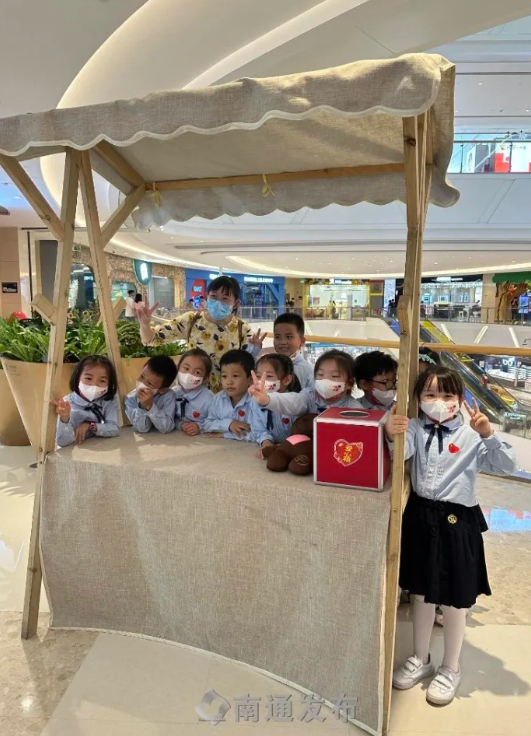 10月1日上午,通师二附2022级(1)班的部分同学代表,在班主任陆颖老师的带领下前往崇川区万象城开展了第一期假日小队主题活动——“童心献礼迎国庆爱心义卖传真情”。