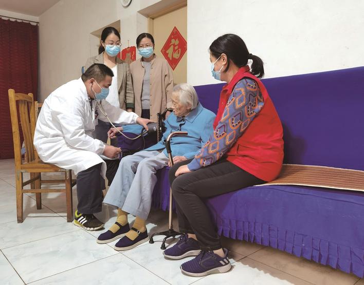 16日,启东市汇龙镇彩臣二村社区在职党员进社区为居民健康义诊。社区党总支书代表和医生党员们来到百岁老人徐正芳家,为她测量血压,询问健康状况,讲授保健知识。