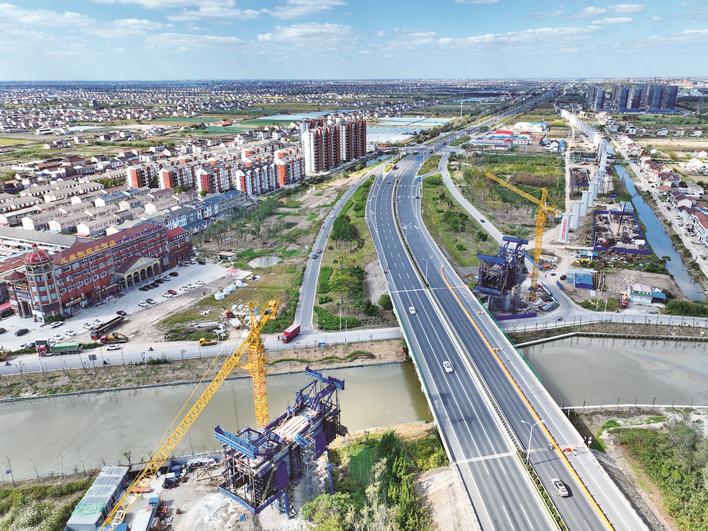 18日拍摄的疏港铁路跨东灶港桥施工现场。疏港铁路是国家推动长江干线港口铁水联运、设施联通行动计划14条重点铁路项目之一,是江苏打造长江集装箱新出海口的重要交通基础设施项目,也是南通自主规划建设的第一条地方铁路专用线,铁路正线全长24.48公里,一期工程项目为新建单线货运铁路,拟于年底完成施工。 记者 许丛军摄