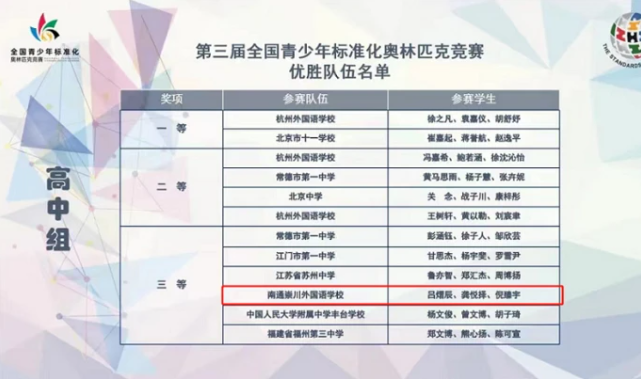 22日从崇川区市场监管局传来消息,中国标准化协会颁发了2022年第十七届国际标准奥林匹克竞赛国内选拔活动暨第三届全国青少年标准化奥林匹克竞赛获奖证书,来自南通崇川外国语学校的三名学生凭借出色表现获得高中组第三名。此外,南通崇川外国语学校、江苏省南通中学两学校荣获“全国青少年标准化科普教育示范学校”称号。