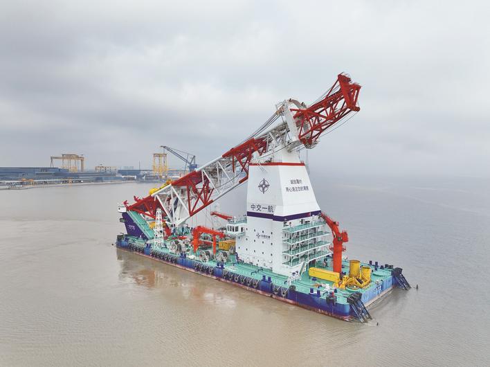10日,世界首艘140米级打桩船“一航津桩”在振华重工启东海洋工程码头启航,将赴浙江舟山参与大桥建设。该船桩架高142米、最大作业桩重达700吨、最大作业桩长达118米+水深、最大作业桩径达6米,可用于大型桩基施工、群桩式基础、风电导管架桩、风电单桩等施工,在大型港口、跨海大桥、海上风电、人工岛快速成岛等建设中发挥中流砥柱作用。 记者 许丛军摄