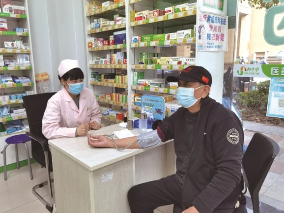 “小杨啊,这个新买的血压药怎么个服法,字太小,我看不太清。”“彭叔叔,这个药片是一天一粒的,餐前餐后都可以,最近血压怎么样,我先帮您量一量。”10日,家住永兴街道节制闸社区保利香槟国际的耄耋老人彭柏祥来到小区门口的街道养老服务联合体——恒生堂大药房咨询用药事宜,店员小杨耐心作了解答。该药房为老人提供用药咨询、免费测血糖量血压等服务,已成为一种常态。