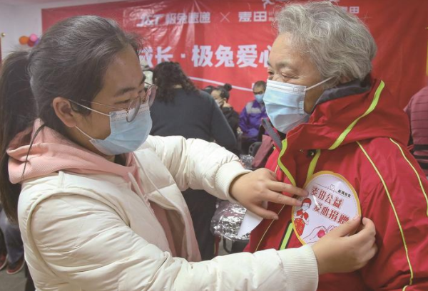 19日,南通麦田公益服务中心走进和平桥街道起凤社区,给社区80名防疫志愿者、保洁员送上冬日保暖衣,传递社会正能量。 李斌
