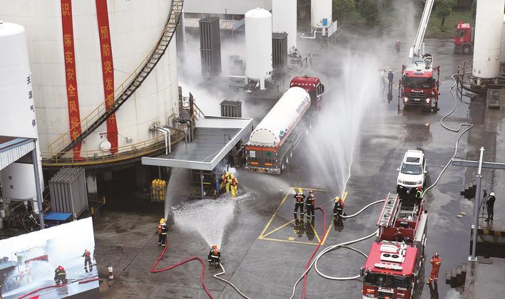 昨天,南通市2022年特种设备事故现代化应急救援演练在崇川区天源气体有限公司内开展。演练模拟了工业气瓶在充装过程中由于瓶阀受损导致气瓶爆炸,进而引发充装储罐和管线受损等情况的应急救援处置。今年以来,市市场监管局通过信息化、智能化、数字化手段,逐步建立起了一支反应灵敏、作风过硬的应急救援队伍。 记者 丁晓春摄