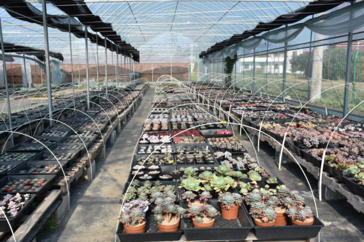 3年前,顾亚敏因为喜欢多肉盆景,在村委的鼓励支持下,承包了1.5亩土地,建设连体式大棚用于多肉种植。如今,他通过引进国外的优质品种,加之自己的用心钻研,已培育出市场上热销的九尾狐、橙梦露、冰玉、冷香等近300多个品种,线上营业额年收入超20万元。