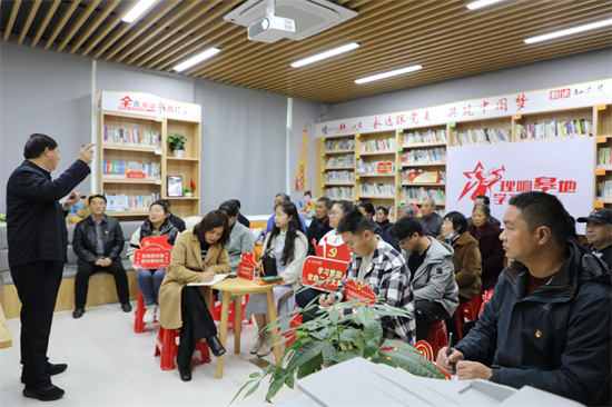 11月14日,一场别开生面的理论宣讲走进永福社区农家书屋。全国优秀党务工作者、全国基层理论宣讲先进个人姚呈明结合农村生产生活实际,从大会主题、大会主要成果、大会意义等方面,为大家深入解读了党的二十大精神的丰富内涵。宣讲中,姚呈明通过“华为种地、京东养猪”等例子,为实现农业农村现代化提供了可借鉴的经验。