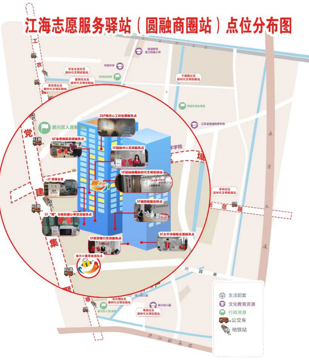 今年以来,南通市崇川区依托圆融商圈区位优势和楼宇资源,建成了全市首个商圈类江海服务驿站,通过以“站”联“点”,形成“1+N”阵地布局,为商圈企业职工、新业态新就业群体以及商圈消费者提供文化休闲、会议洽谈、理论学习、心理咨询等,,让志愿服务行动持续“升温”。