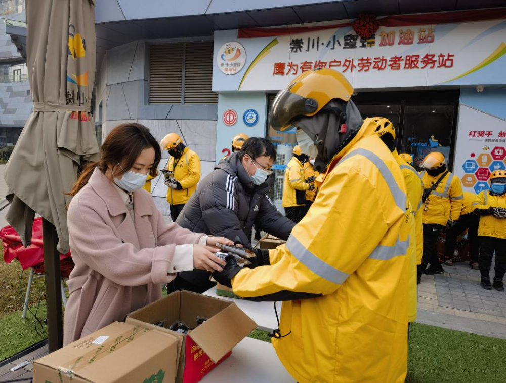 “这段时间每日派送单量增加了不少,我们的工作强度明显增强,身心也很疲惫。在我们正需要帮助的时期,送来了防疫药物和防寒物资,我们都非常感动。”美团圆融站骑手王虎说。近期,南通市崇川区在圆融商圈崇川小蜜蜂加油站开展新业态新就业群体慰问活动。