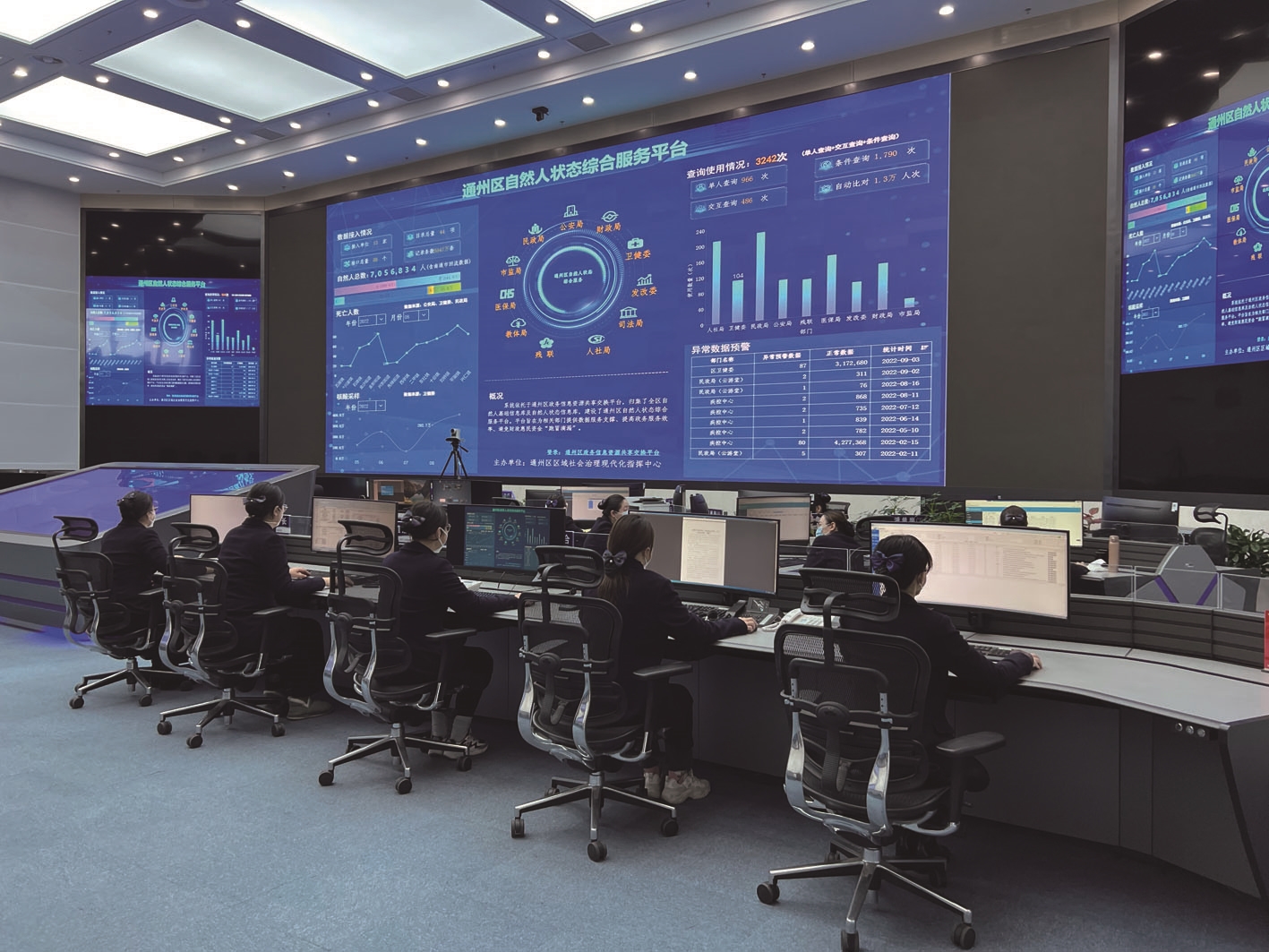 数据共享被视为数字政府建设的“牛鼻子”。为此,通州区指挥中心自助开发全市首个“自然人状态综合服务平台”,通过平台数据整合归集,全区社会保障、信用管理、医疗卫生等多领域信息在部门间有效流通。