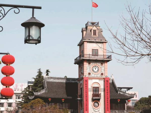 “风雨问初心,百余年不舍晨昏、与时俱进;海山抟瑞气,三万里喜交寅卯、有梦皆圆。”“兔管狼毫,好描第一江山卷;海杯霞盏,更醉大千天地春。”昨天上午,伴着喜庆的音乐,两副巨幅的大红春联分别在南通钟楼和狼山南门亮相。