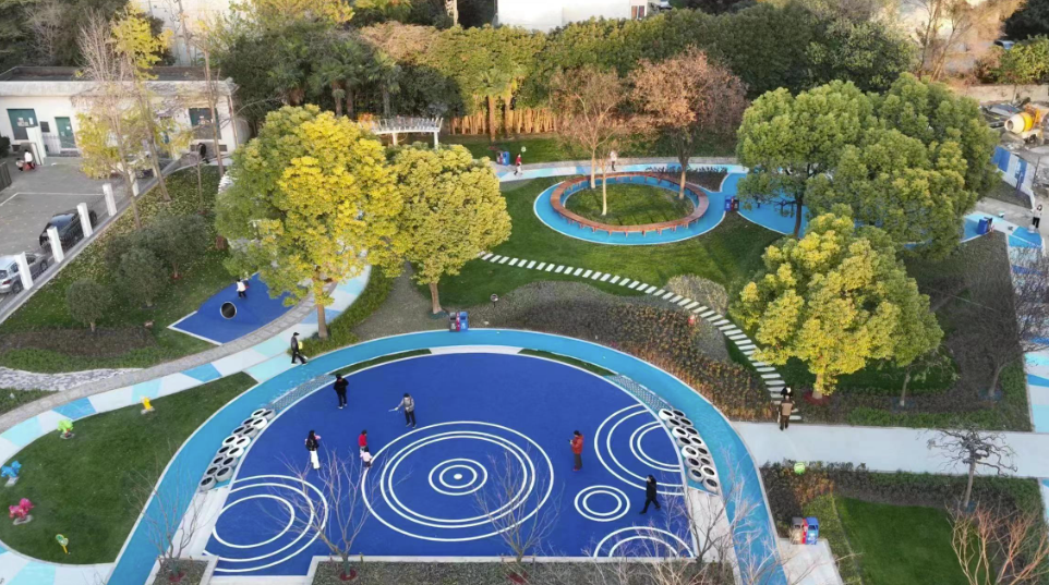 濠西园小游园位于濠西园小区内,建成开放已经十几年了。改造前,小游园的功能设施老旧,绿化杂乱。2022年,崇川区对该小游园实施提档改造,不仅补种了绿色地皮、樱花树,还完善了功能设施。比如:对园路整体铺装换新,打造成更适合跑步的柔性路面;设置居民健身场地、儿童游乐设施;沿园路增加座椅;西侧空置广场改为图案型趣味塑胶场地。目前,该游园已成功申报纳入省级“乐享园林”项目。“这样的改造满足了休闲锻炼的双重需要,现在大家都喜欢到这里来。”居民秦奶奶说。