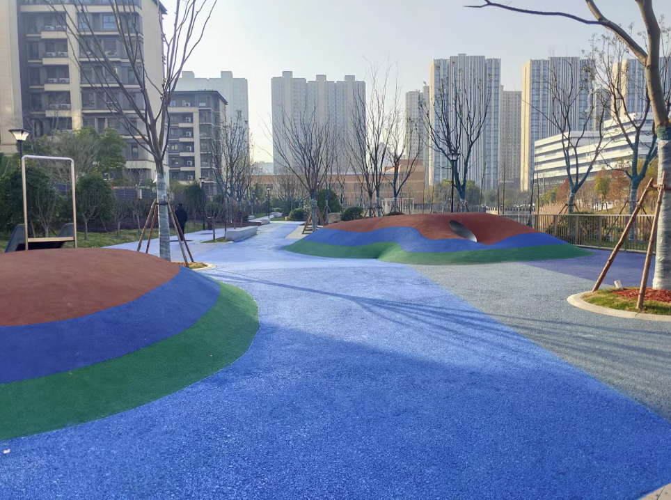 位于港盛路南、静海府小区西的体育运动学校南侧小游园,园内栽种多种树木,浇筑蓝色透水混凝土路面,充满生机与活力;蹦床、滑梯等儿童游乐设施一应俱全。位于狼山镇街道荟景苑小区东侧的裤子港河西小游园,改造建设了900平方米的健身广场。