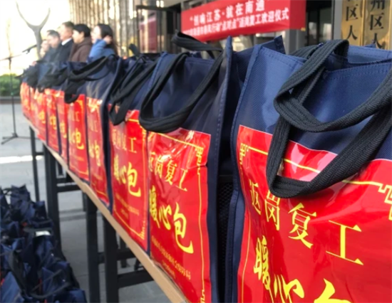 周小琪之前在运城工作,工资不高,“有个朋友在南通上班,说这里待遇很好,今天一来我就感到特别温暖。”欢迎仪式上,人社部门给每人都发放了精心准备的返岗复工暖心包。周小琪特别感动,“不但这么热情地欢迎我们,还帮我们把口罩、毛巾、沐浴液都准备好了,我希望能长期留在南通,未来能有好的发展。”
