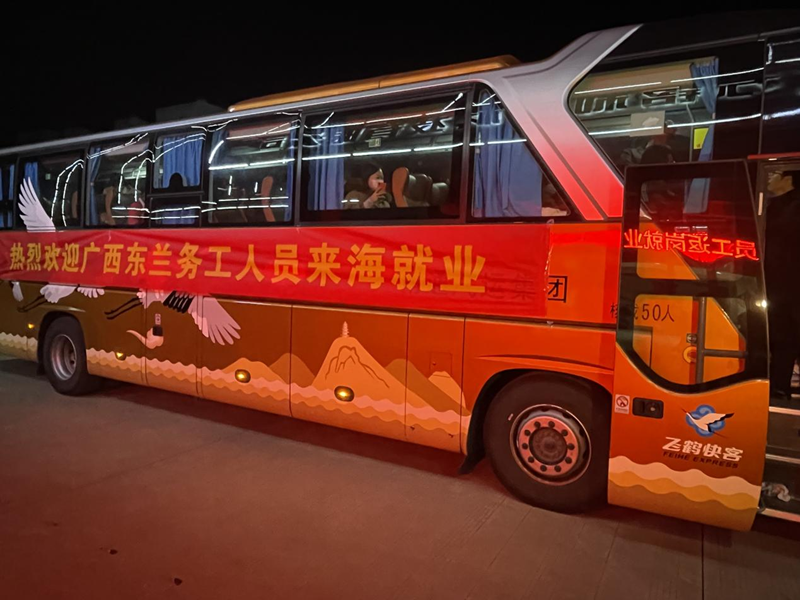 据介绍,这批东兰务工人员是2023年春节后海安市人社部门通过免费包车接回的首批重点企业返岗务工人员。接下来,海安市还将继续开展“点对点”包车包机活动,预计正月里还将有两批从陕西略阳、广西东兰的近200名务工人员来海。