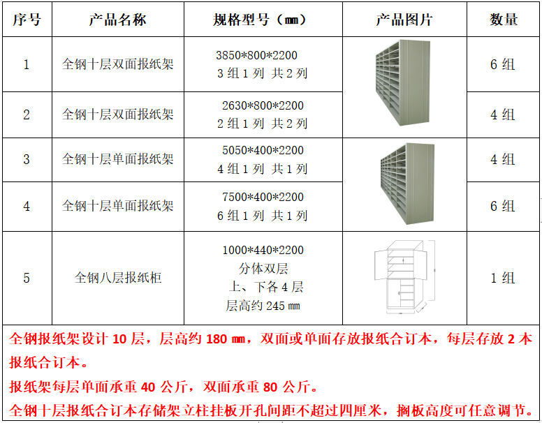 四、合订本报架产品需求:(报价单及平面图摆放见附件)