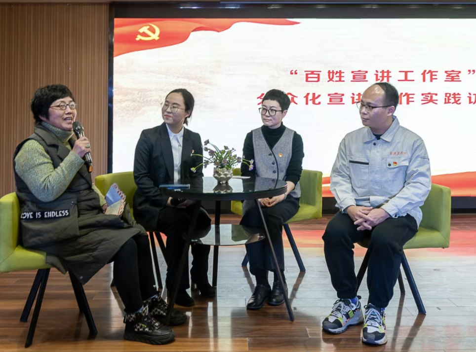 活动现场,崇川区“青骑兵”宣讲团成员、钟秀街道“百姓宣讲工作室”骨干成员葛婷与三位分别来自社区邻里、企业园区和社会组织的党员代表进行分众化宣讲工作实践访谈,通过面对面、点对点的交流,了解党员冬训学习需求,确保精准推送学习内容。