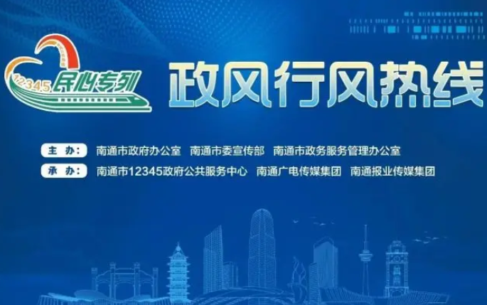 “民心专列·政风行风热线”节目由市政府办公室、市委宣传部、市政务服务管理办公室主办,市12345政府公共服务中心、南通报业传媒集团、南通广电传媒集团承办。相关直播内容,在南通发布客户端、“南通日报新闻110微信公众号”、江海晚报“民心专列·政风行风热线”专版刊出,敬请市民关注。