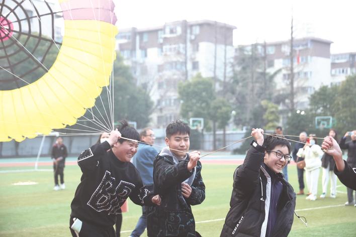 在“遇见板鹞风筝”课堂上,胡智向学生们讲授了风筝的起源、中国四大风筝产地和特点,以及扎糊绘放、哨口的雕刻排列等南通板鹞风筝制作技艺。这一被誉为“空中交响乐”的特色非遗神奇在哪里?为了让学生们亲眼见证、亲耳倾听板鹞,胡智将课堂搬到了户外,实地放飞板鹞,一时间,得风传音,响声阵阵,学生们沉浸其中,乐享乐学。