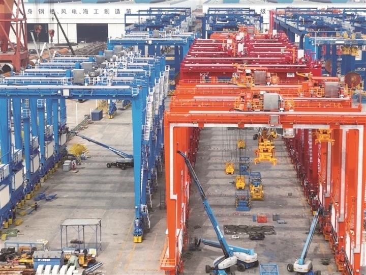 2月28日,工作人员在振华重工南通基地调试即将交付的港机产品。据悉,2月15日,振华重工产品进入蒙古国,至此,上海振华重工产品已进入106个国家和地区,承担了全球约70%的自动化码头项目建设。记者 许丛军摄