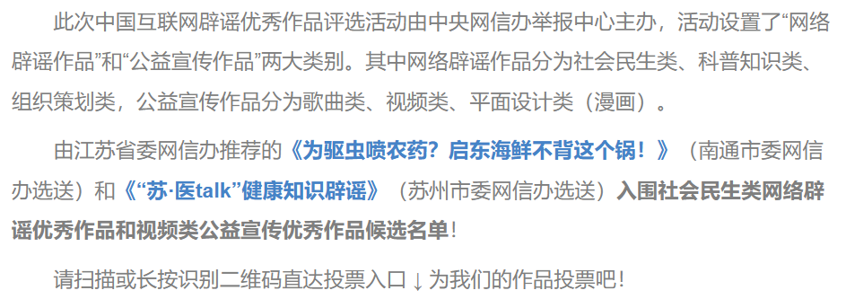 近日,第五届中国互联网辟谣优秀作品评选活动正式开启网络公众投票!