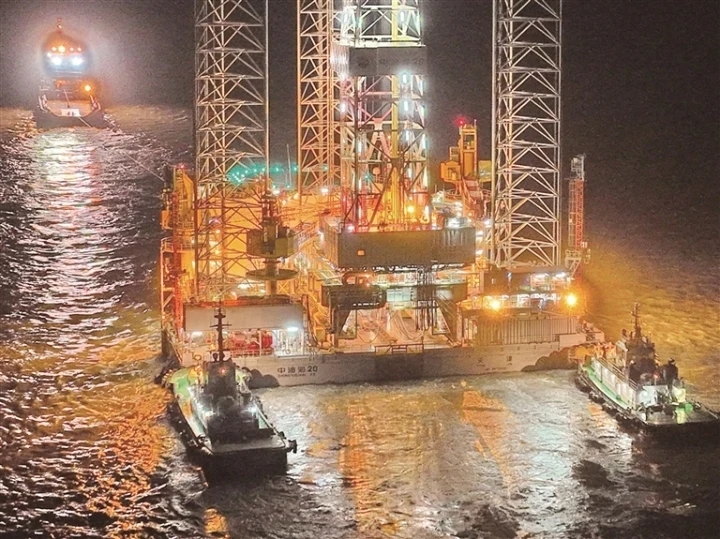 昨天凌晨,“中油海20”平台被拖航离开招商重工海门基地码头,启航奔赴KL1-2-1d井进行首开钻井作业。