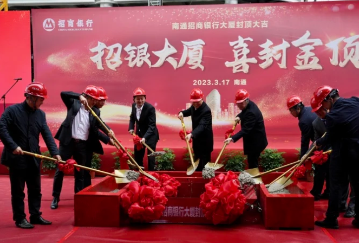 南通网讯 (记者蒋晓东 顾凌)17日,位于南通创新区的南通招商银行大厦完成主体结构封顶,项目预计明年6月完工,有望成为城市新中心的重要地标。市委副书记、南通创新区党工委书记沈雷参加封顶仪式并致辞。