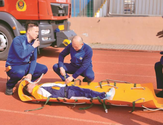 逃生演练、灭火、担架固定……昨天,如皋港专职特勤消防站的消防人员携带消防器材和消防车辆,来到长江镇长新小学,给小学生们开展消防安全教育。