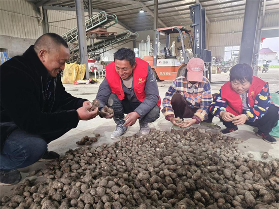 “大家按讲解的技术要点种植,有问题随时来找我!”在“代育苗”大棚里,江苏海安市雅周镇东夏村党总支书记王海洋热情地给种植户分发优质种苗。自全国“红色村”试点建设以来,东夏村党总支积极探索“支部+合作社+基地+农户”模式,流转土地150亩建设香芋种植基地,引导农户利用拾边地种植香芋、紫薯等特色根茎作物,通过与浙江、上海等地签订订单农业,注册“东夏芋头”品牌,实现村民种植香芋兜底销售。同时定期邀请南京农科院专家团赴田间指导,帮助提升种植水平,全面推动群众致富增收。2022年,东夏村党总支带动全村1023户新增香芋田近300亩,累计助销9万余斤。“村里帮我们‘兜着底’,技术指导随时‘在线’,香芋不愁长也不愁卖!多亏咱头发都熬白了的好书记!”种植户陆大妈喜笑颜开。