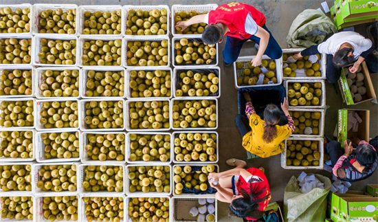 “梨树开出的是‘幸福花’,结出的是‘致富果’,我们从事的是一份甜蜜的事业。”江苏海安市大公镇于坝村党总支书记杨勇“满面春风”。梨园建设初期,村内的果农各自为战,不仅技术不成熟、种植品种单一,而且无法形成规模效应,梨园效益一直上不去。村党总支了解情况后,创新采取“支部+合作社+农户”运行模式,引导农户土地入股合作社,由村党组织统一经营管理、统一提供种植技术、统一对外销售、统一分配盈利,每年牵头举办“梨花节”,大力开发文旅融合发展项目,打造直播电商馆,不断放大海安脆梨品牌效应,有效拓宽致富路。“今年我们梨园预计带动周边400余户家庭增收,解决剩余劳动力200多人,年人均增收2万元。”看着梨子“招牌”越来越响、梨果“香味”越来越浓、幸福“梨”百姓生活越来越近,杨勇脸上笑开了花。(卞冬建)