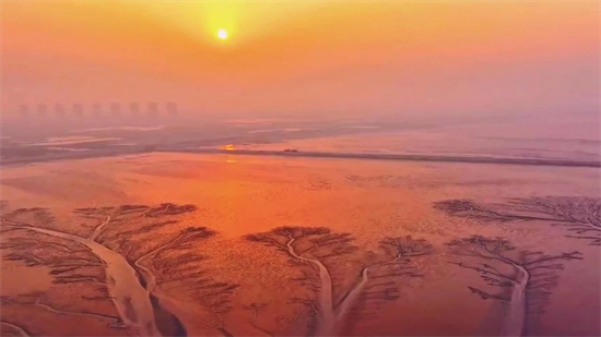 海潮退却,浅滩上出现一棵棵枝丫分明、栩栩如生的“树”,在落日映照下,仿佛一片金色的森林,闪闪发光。这就是霸屏全网的“潮汐树”。