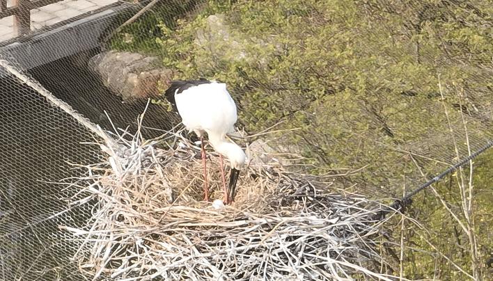 今天是“国际爱鸟日”。昨天,南通森林野生动物园爱情湾再传佳讯,网红东方白鹳鸟妈继3月30日产下第一枚卵后,又产下了第二枚卵,不日即可坐巢孵化。东方白鹳孵卵期为31~34天,据此推算,如果孵化过程都较为顺利,新的鹳宝宝可望在今年“五一”节后出壳。
