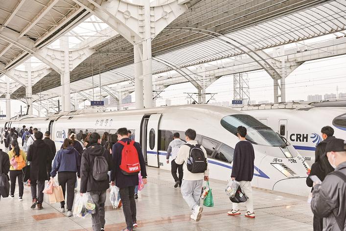 3月25日,众多旅客在南通火车站出行。记者昨天从中国铁路上海局集团有限公司获悉,本周末,长三角铁路将迎来春游运输客流最高峰,3天预计发送旅客750万人次以上。铁路部门提醒,目前春游运输已进入最高峰,不少干线、车站将出现短时大客流,铁路部门建议旅客尽量提前出门,为市内交通、进站安检预留充足时间。记者许丛军
