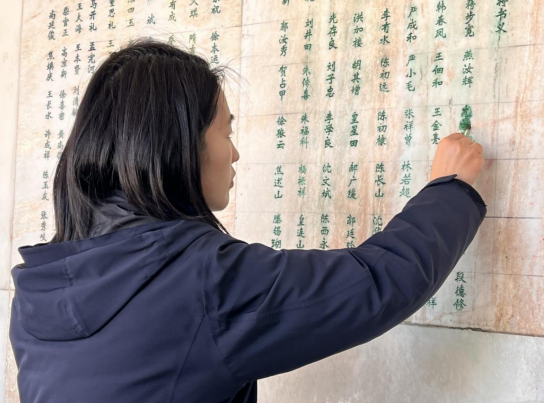 今年是太爷爷牺牲75周年,尤婷婷得知淮海战役烈士纪念塔园区内有一面“英烈墙”,便想携家人前去祭奠,却被工作人员告知馆藏烈士名录里没有这个名字。尤家人第一时间联系到市退役军人事务局寻求帮助。因年代久远,相关历史档案查证有些难度,但市退役军人事务局高度重视,专门成立查证小组,多方寻找,最终在当地查找到了一份尤学礼烈士证的复印件。市退役军人事务局随即与淮海战役烈士纪念塔管理中心取得联系,递交了补刻名字必需的档案及材料。