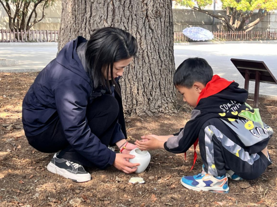 临行前,尤婷婷和儿子在青山翠柏间取了一抔土,小心翼翼地装进随身携带的洁白瓷罐,带回了家乡……