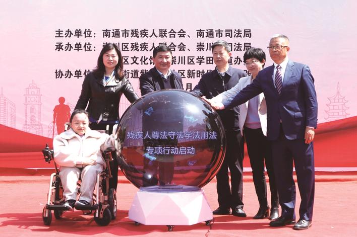 昨天,南通市暨崇川区残疾人尊法守法学法用法专项行动在学田公园启动,旨在全面提升广大残疾人法治素养和依法维权能力。 记者尤炼