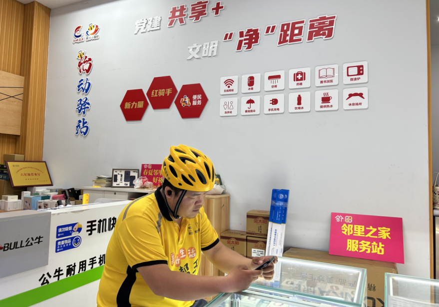 变“无规矩”为“有章法”。社区“大党委”牵头组建服务队伍,带动在职党员、发掘商户中流动党员、组织好社区党员开展服务,累计发现并整改问题120余起,开展街区巡逻50余次。值得一提的是,街区内永怡路移动营业厅的“怡动驿站”也被打造成为“快递小哥”等户外工作者的移动“休息站”。