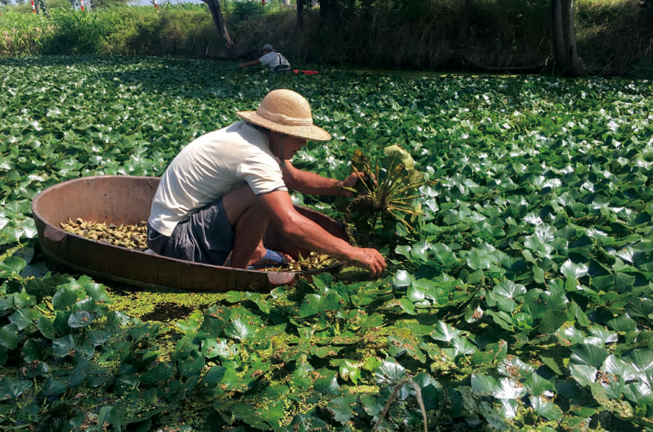 水乡新店素有“九沟十八汊”之称,历史悠久、风光秀丽。同时也因为地势低洼、沟塘甚多,不适宜种植粮食作物。三角渡村因地处偏僻,基础设施、生产条件薄弱,村集体经济发展受到限制。近年来,该村发挥集体智慧,打通较浅连片低洼地块,变废为宝,引导村民种植优质品种莲藕。在最大化利用土地的同时,三角渡村还组织本村闲置劳动力,在采摘季去种植基地帮忙采收、清洗莲藕,增加收入。3组村民王兴云,将自己荒废多年的12亩地流转出去,加上采摘季去打工,每年能够增收1万多元。